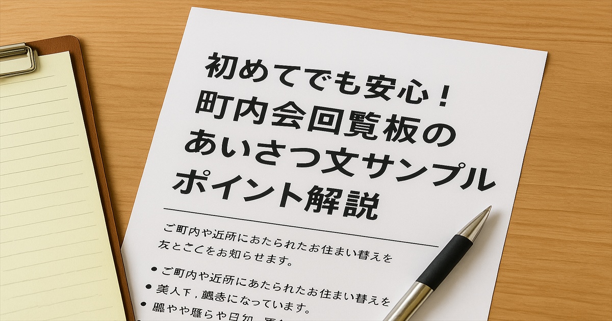 この記事では、町内会回覧板のあいさつ文の基本構成、書き方のコツ、季節や目的別の文例をわかりやすく紹介します。