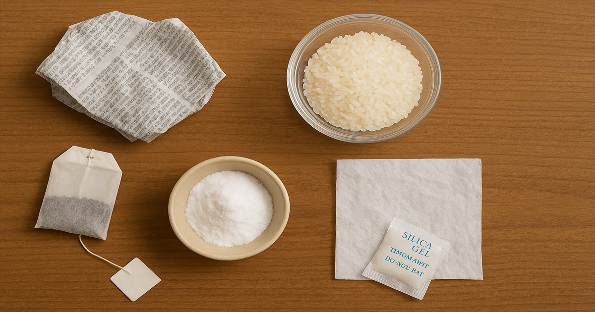 新聞紙、重曹、ティーバッグ、米…どれも立派な乾燥剤代わりになります。