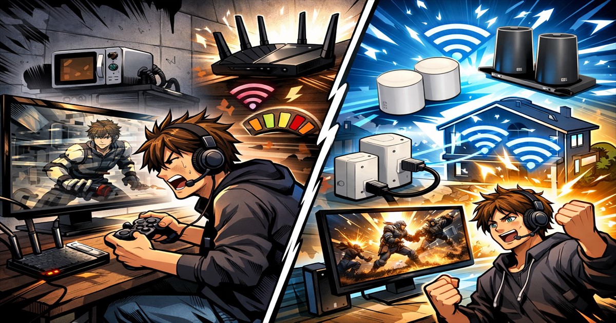 メッシュWi-Fiは家全体をカバーでき、切り替えの遅延がないため、ゲーム中のラグを最小限に抑えられます。
