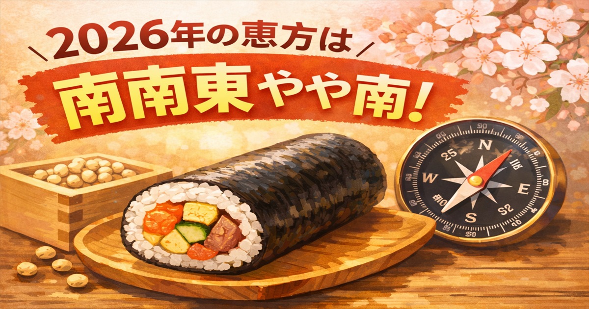 この記事では、2026年の恵方の方角だけでなく、恵方の意味や由来、スマホでの確認方法、恵方巻きの正しい食べ方まで、まるごと解説します。